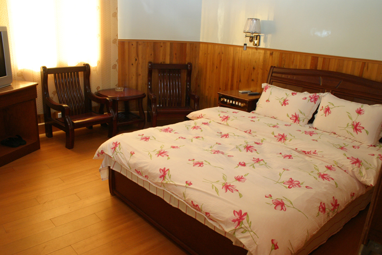 Kara OK equipment was installed in the hall.Two vertical air conditioner with high efficiency are standing in opposite position.Here it is not only the dinning room, but also a place to show your singing.There are totally 20 beds, distributed in 5 standard rooms and 5 ordinary rooms.With good and satisfactory service, the guest house gives you the sense of homelike.